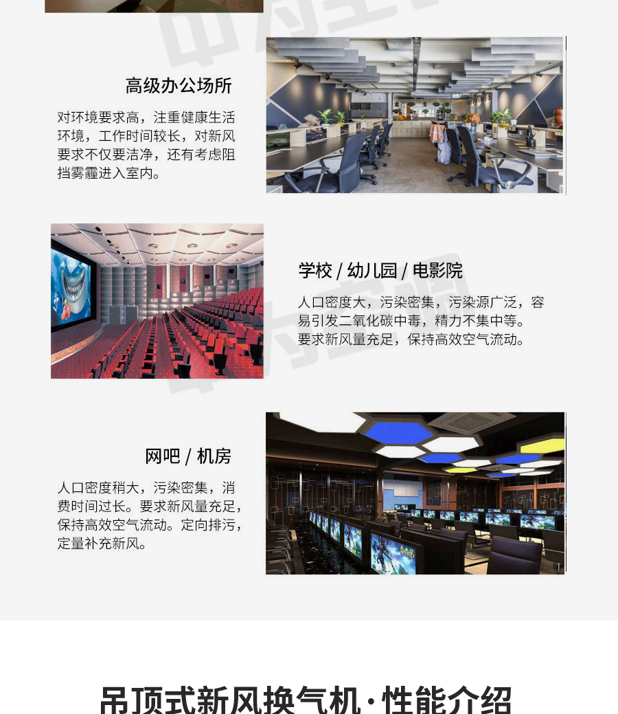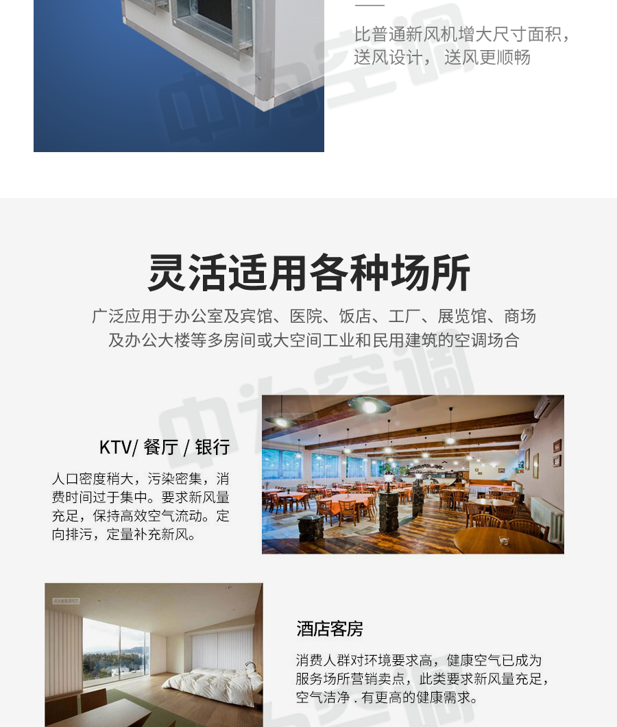 吊頂式新風(fēng)機(jī)組是提供新鮮空氣的一種空氣調(diào)節(jié)設(shè)備。功能上按使用環(huán)境的要求可以達(dá)到恒溫恒濕或者單純提供新鮮空氣。工作原理是在室外抽取新鮮的空氣經(jīng)過除塵、除濕(或加濕)、降溫(或升溫)等處理后通過風(fēng)機(jī)送到室內(nèi),在進(jìn)入室內(nèi)空間時(shí)替換室內(nèi)原有的空氣。當(dāng)然以上所提到的功能得根據(jù)使用環(huán)境的需求來定,功能越齊全造價(jià)越高。