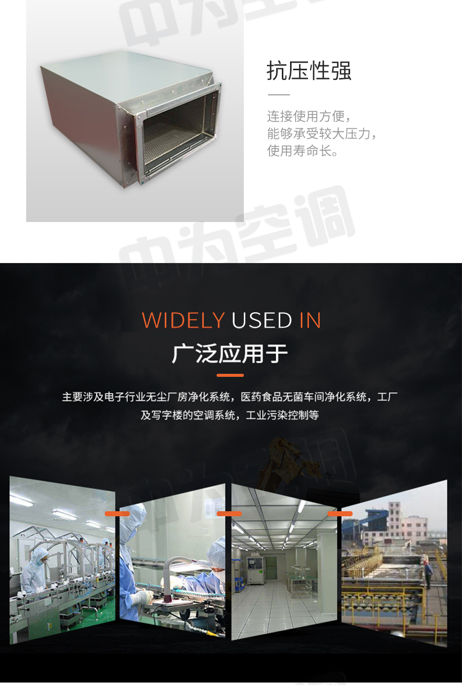 中為空調(diào)—靜壓箱是送風(fēng)系統(tǒng)減少動(dòng)壓、增加靜壓、穩(wěn)定氣流和減少氣流振動(dòng)的一種必要的配件,它可使送風(fēng)效果更加理想。靜壓箱是一種既能允許氣流通過(guò),又能有效地阻止或減弱聲能向外傳播的裝置。