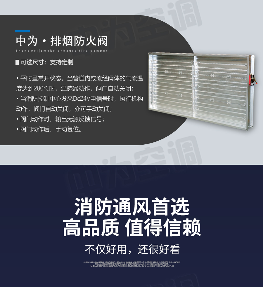 中為多葉排煙口 閥門平時(shí)常閉; Dc24V電動(dòng)開(kāi)啟,手動(dòng)開(kāi)啟,輸出開(kāi)啟信號(hào); 手動(dòng)復(fù)位。