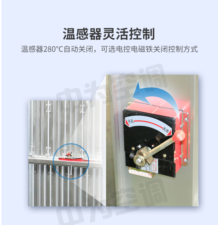 中為排煙防火閥 閥門平時(shí)常開(kāi); 溫感器280℃自動(dòng)關(guān)閉,手動(dòng)關(guān)閉,輸出關(guān)閉信號(hào); 手動(dòng)復(fù)位。